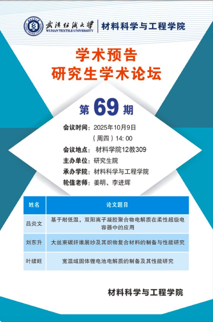 学术预告:第956期研究生学术论坛暨材料科学与工程学院2025年第20期研究生学术论坛