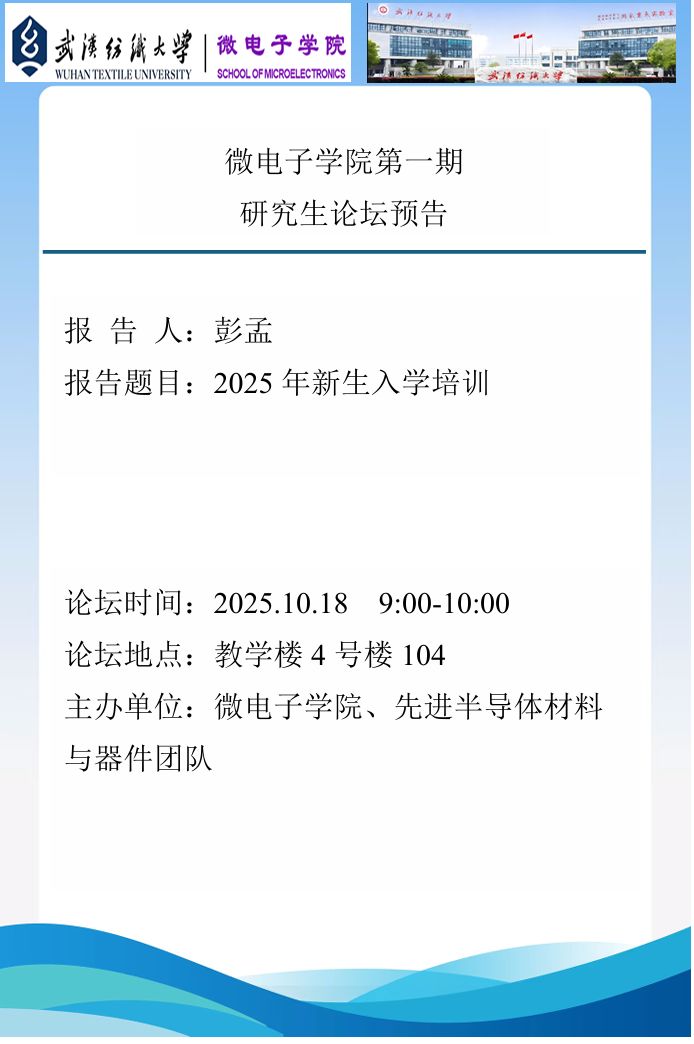 学术预告:第965期研究生学术论坛暨微电子学院2025年第1期研究生学术论坛