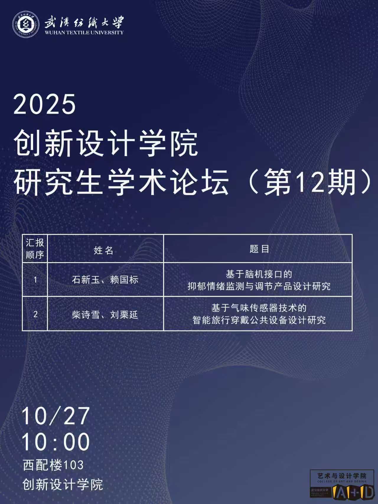2025 10-21学术预告:第968期研究生学术论坛暨艺术与设计学院2025年第12期研究生…