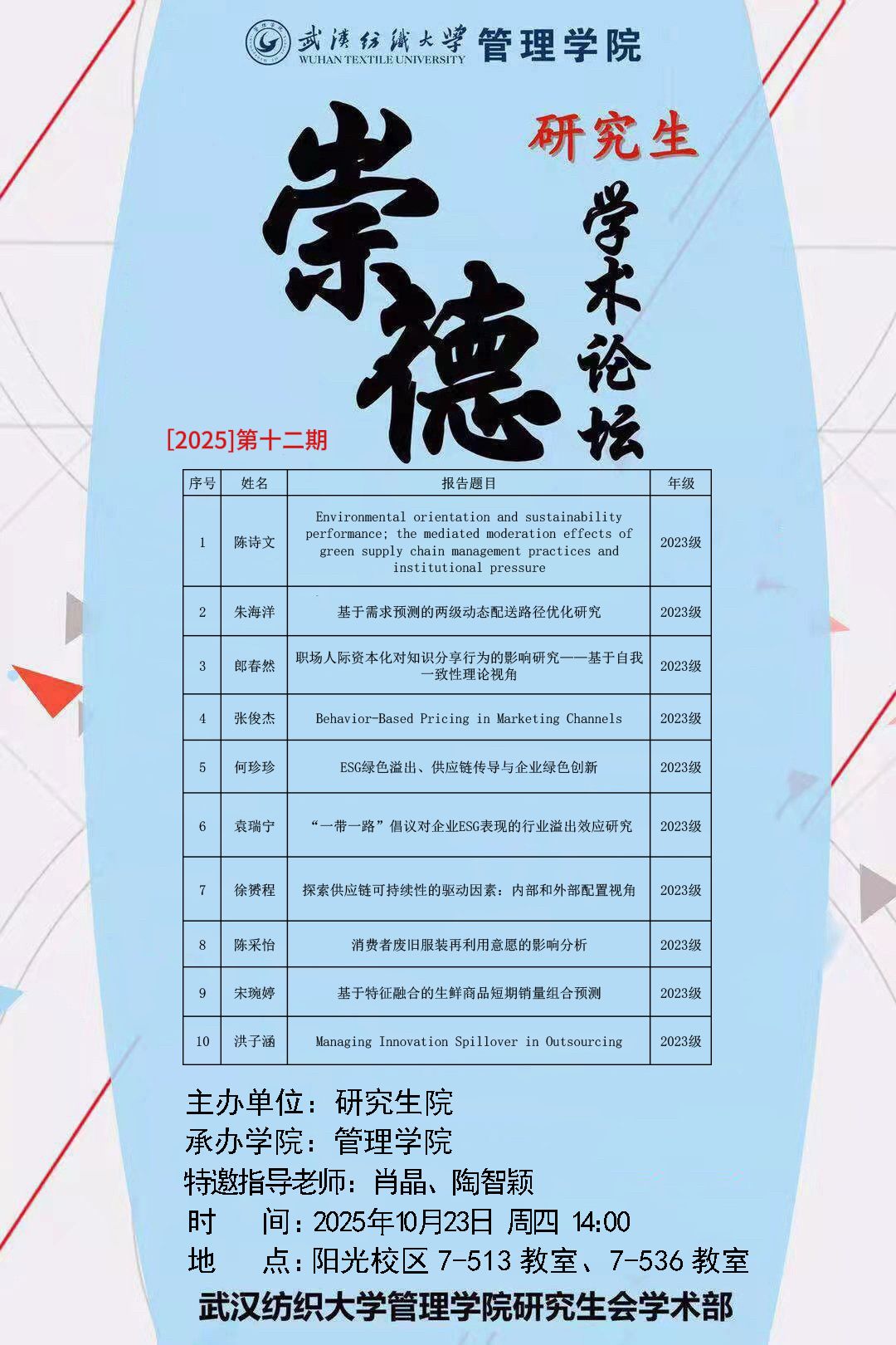 2025 10-22学术预告:第971期研究生学术论坛暨管理学院2025年第12期研究生学术论…