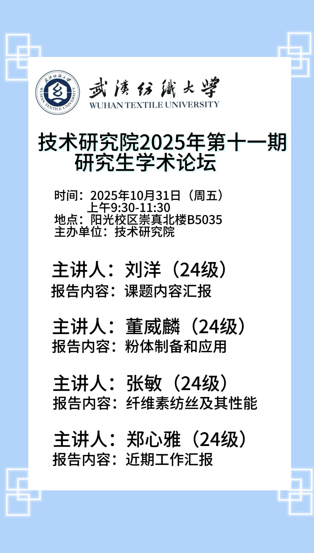 学术预告:第974期研究生学术论坛暨技术研究院2025年第11期研究生学术论坛