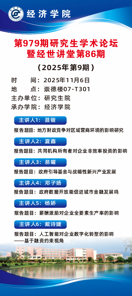 学术预告:第979期研究生学术论坛暨经济学院2025年第9期研究生学术论坛