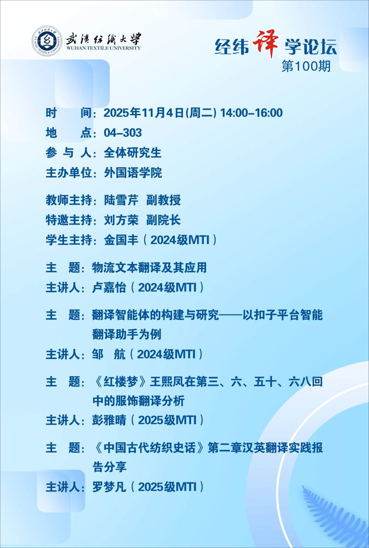 学术预告:第980期研究生学术论坛暨外国语学院2025年第11期研究生学术论坛