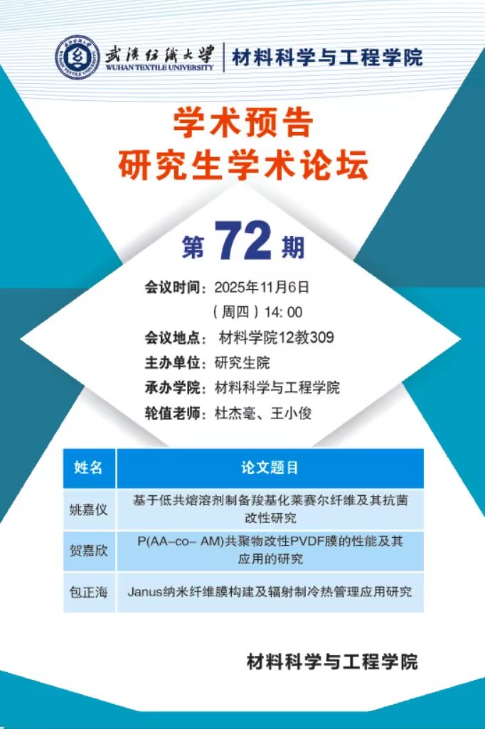 学术预告:第982期研究生学术论坛暨材料科学与工程学院2025年第23期研究生学术论坛
