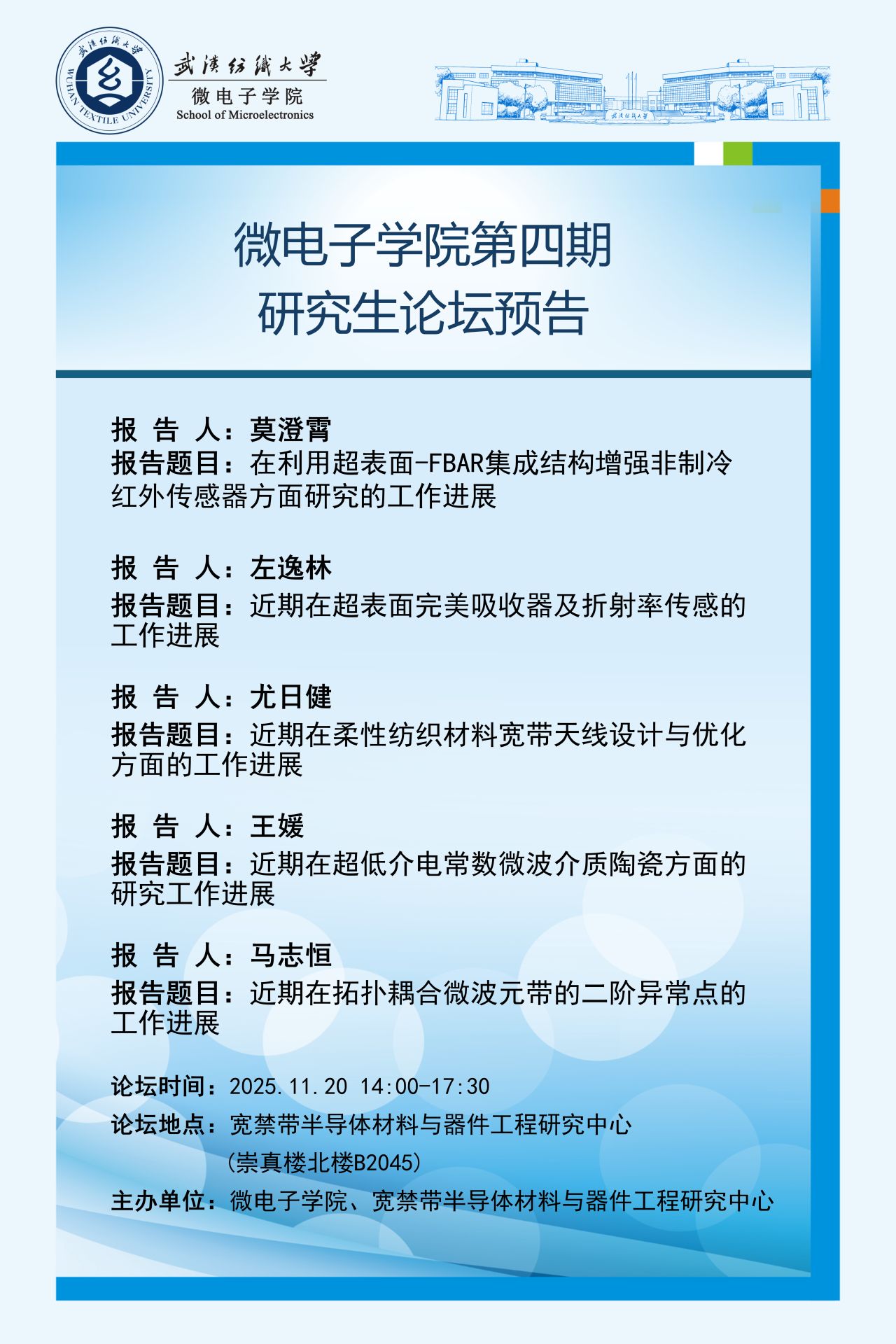 2025 11-07学术预告:第989期研究生学术论坛暨微电子学院2025年第5期研究生学术论…