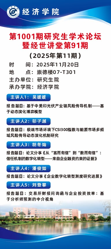 学术预告:第1001期研究生学术论坛暨经济学院2025年第11期研究生学术论坛