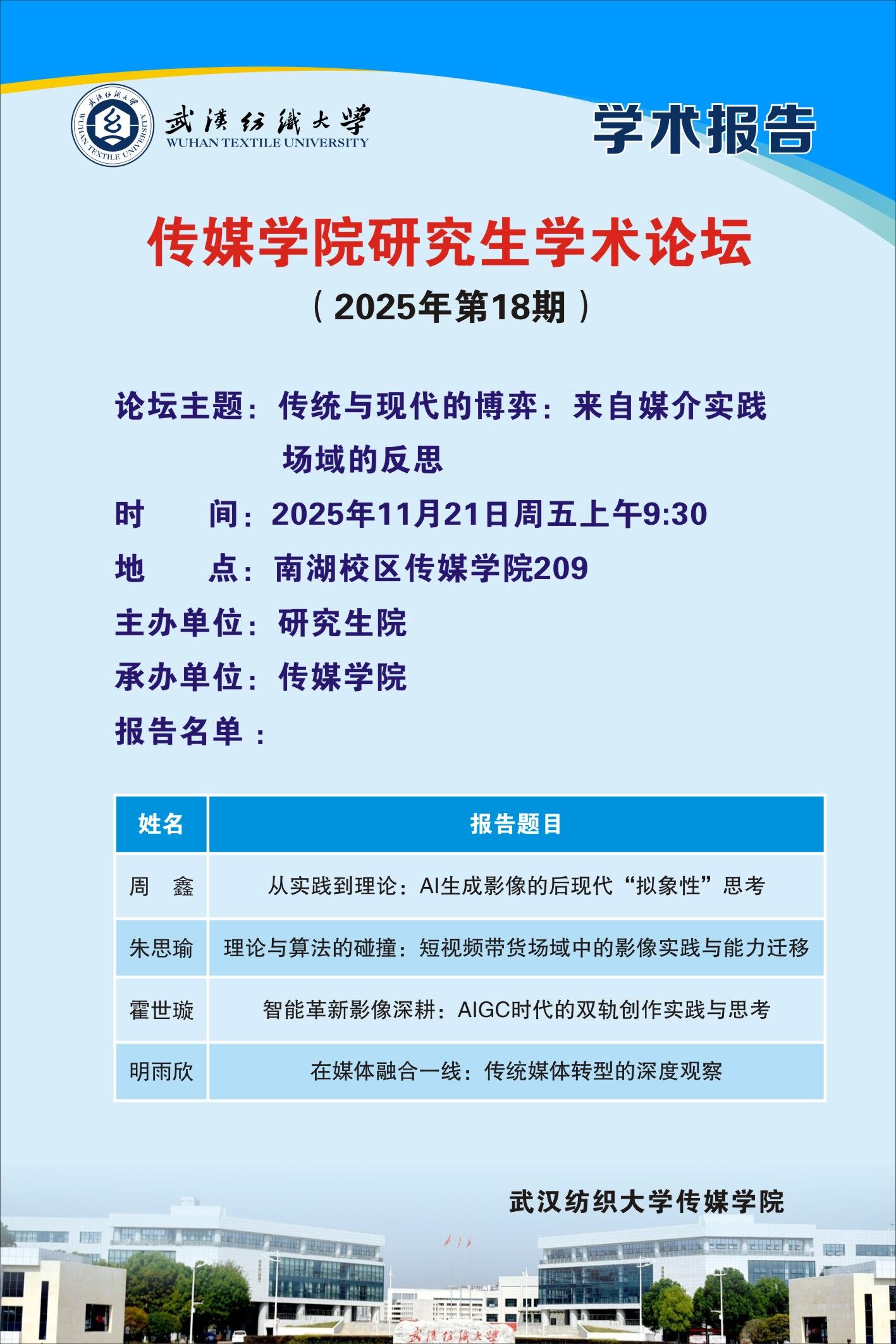 2025 11-17学术预告:第999期研究生学术论坛暨传媒学院2025年第17期研究生学术论…