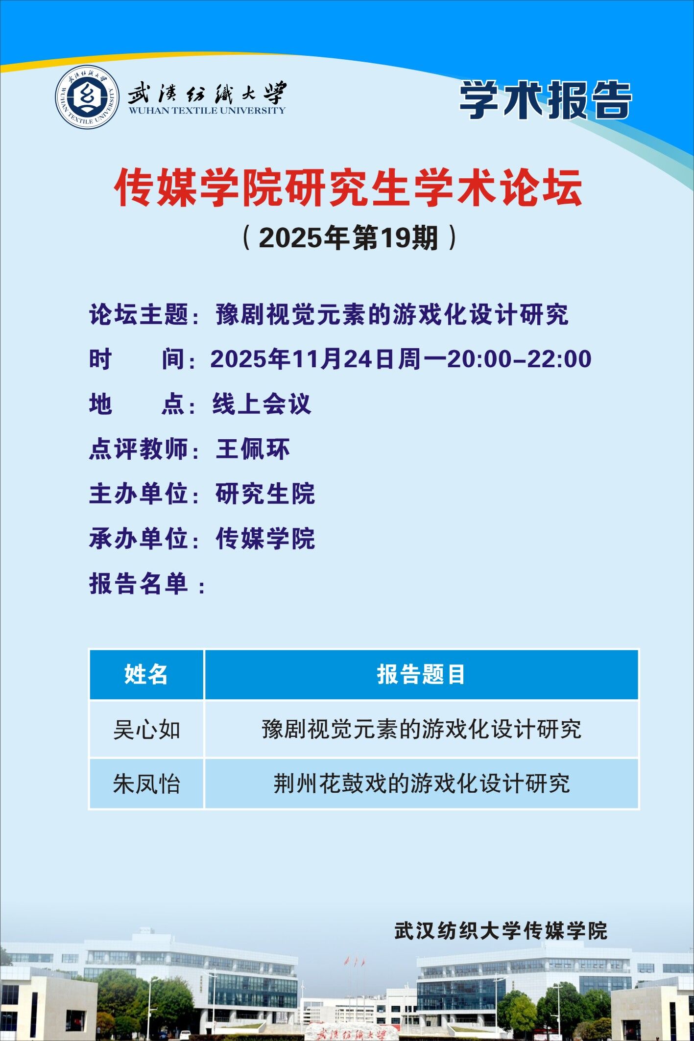 学术预告:第1003期研究生学术论坛暨传媒学院2025年第19期研究生学术论坛