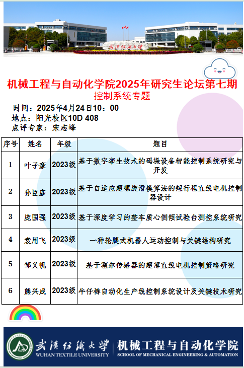 学术预告:第1014期研究生学术论坛暨机械工程与自动化学院2025年第9期研究生学术论坛