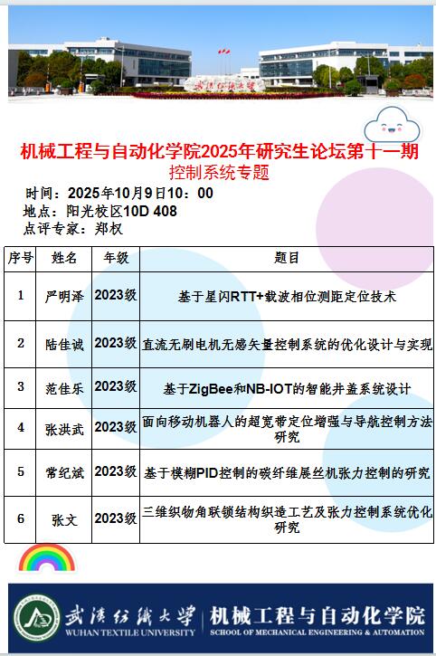 学术预告:第1018期研究生学术论坛暨机械工程与自动化学院2025年第13期研究生学术论坛