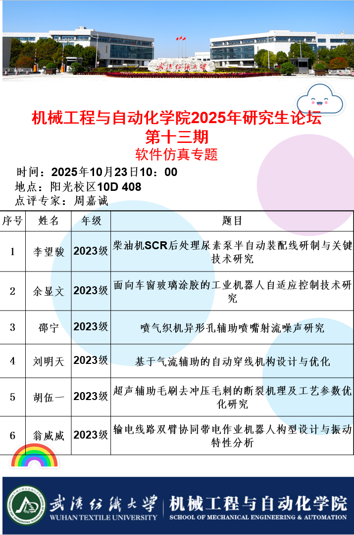 学术预告:第1020期研究生学术论坛暨机械工程与自动化学院2025年第15期研究生学术论坛