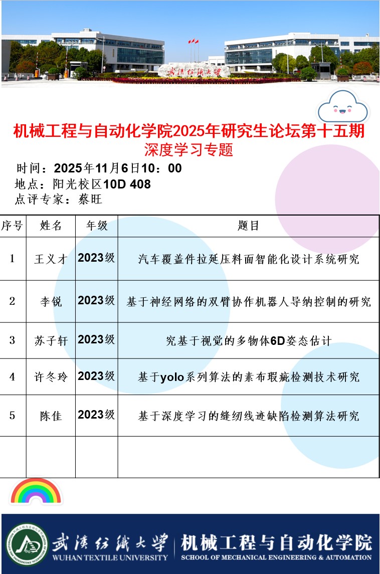 学术预告:第1022期研究生学术论坛暨机械工程与自动化学院2025年第17期研究生学术论坛