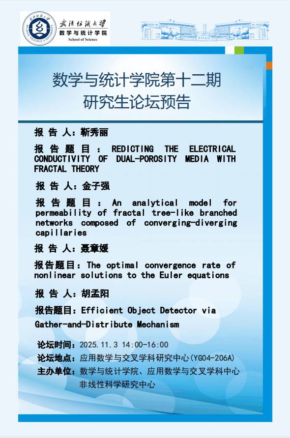 学术预告:第1025期研究生学术论坛暨数学与统计学院2025年第12期研究生学术论坛