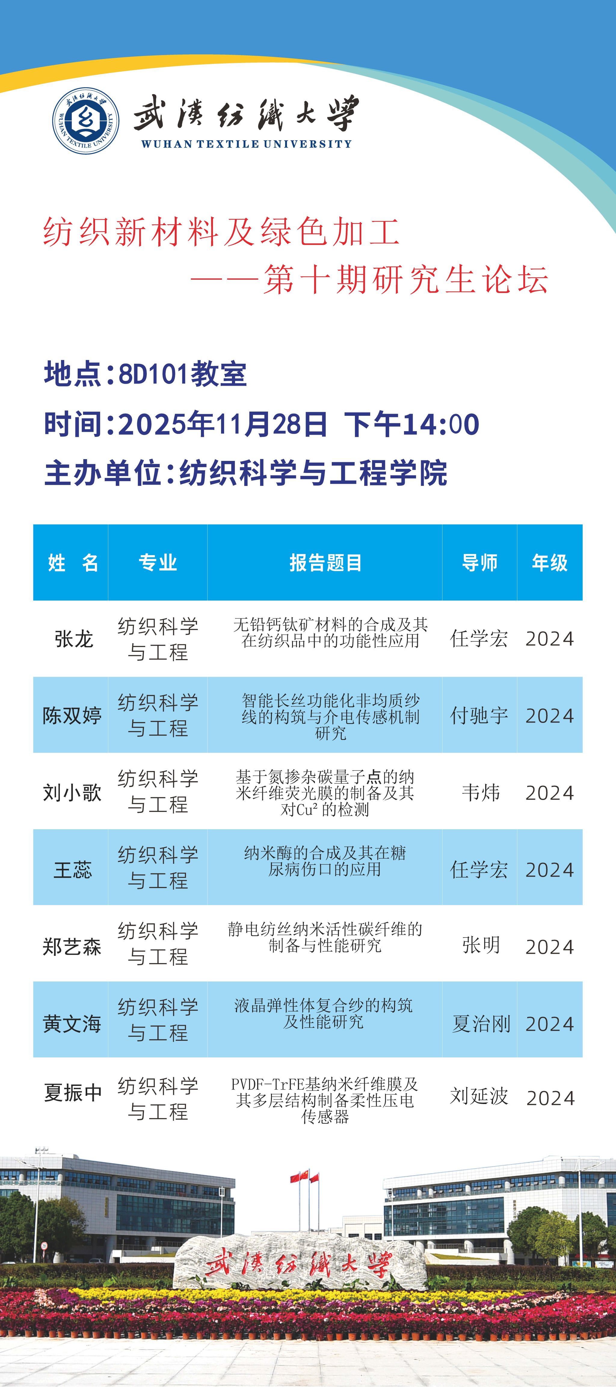 2025 11-24学术预告:第1032期研究生学术论坛暨纺织科学与工程学院2025年第9期研…