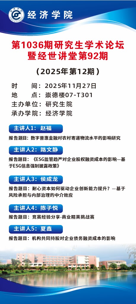 2025 11-25学术预告:第1036期研究生学术论坛暨经济学院2025年第12期研究生学术论…