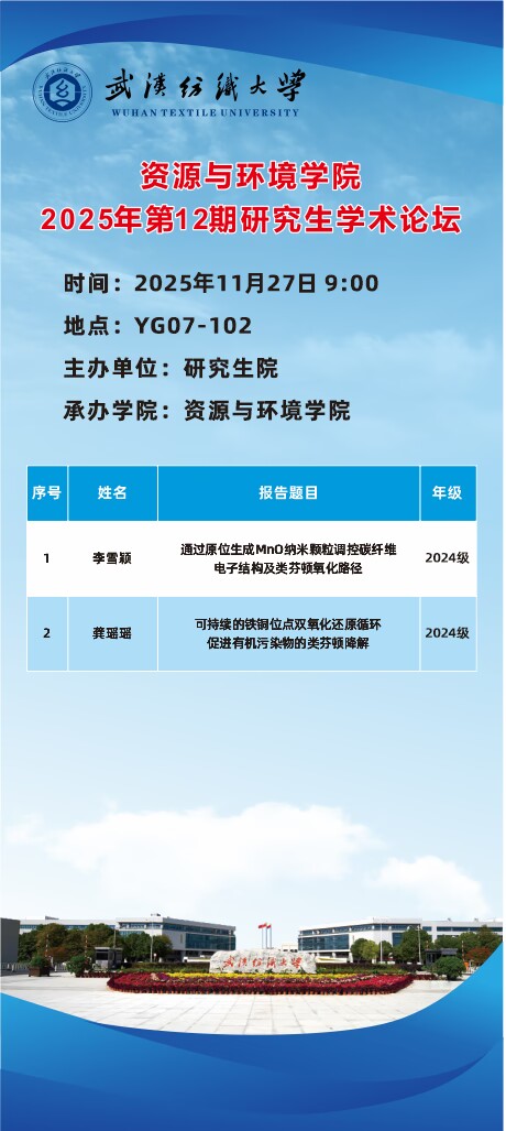 学术预告:第1042期研究生学术论坛暨资源与环境学院2025年第12期研究生学术论坛