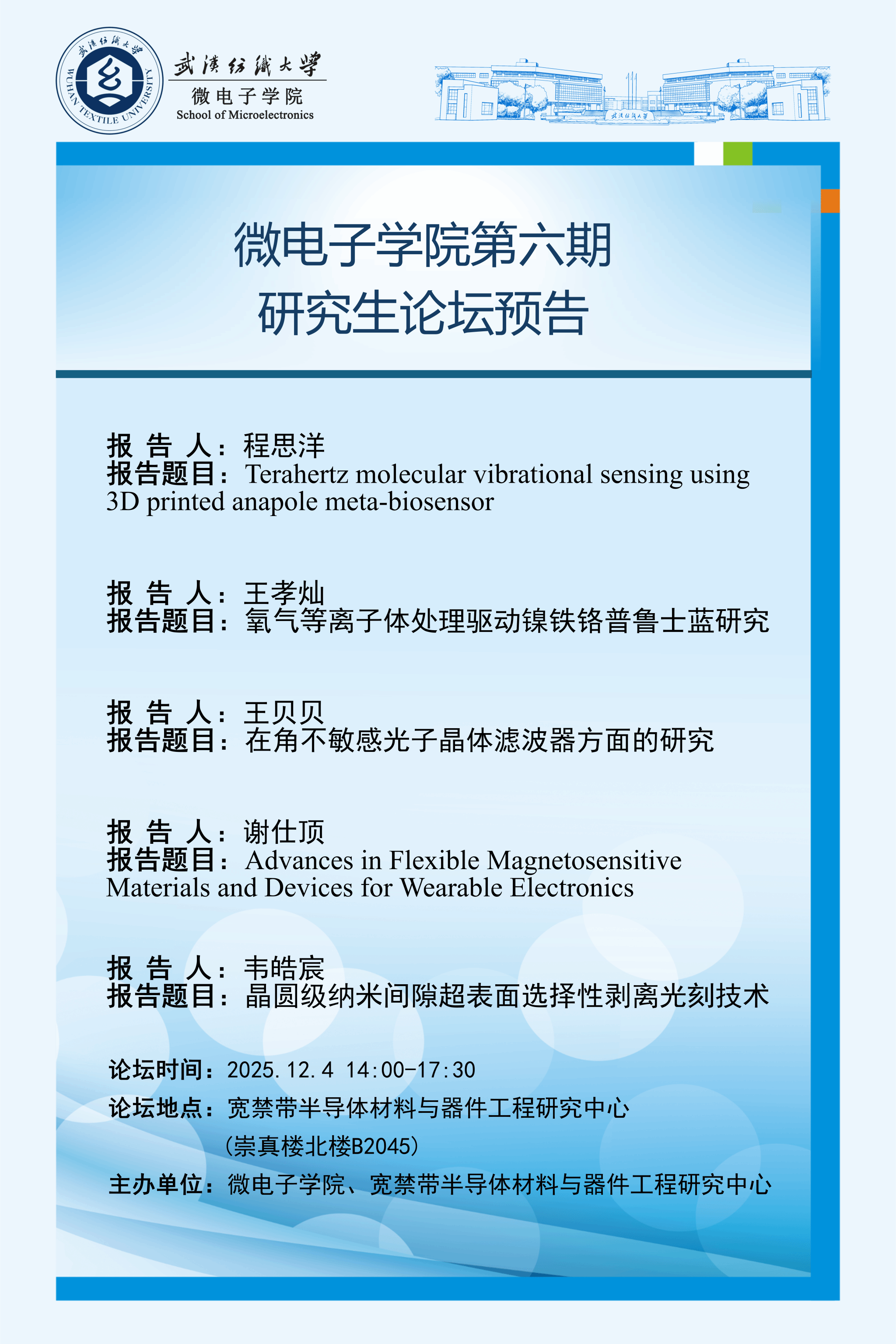 学术预告:第1057期研究生学术论坛暨微电子学院2025年第6期研究生学术论坛