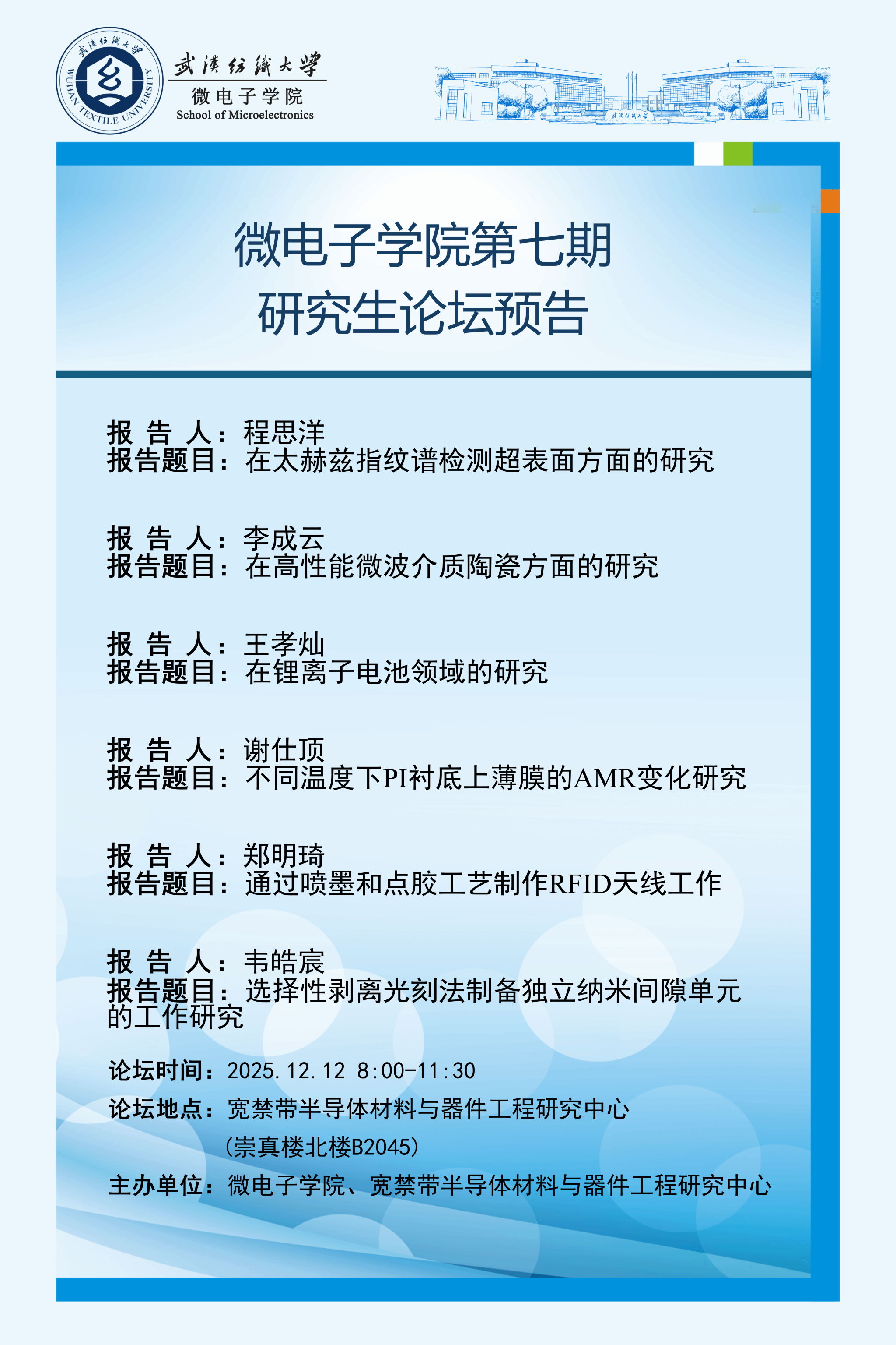 学术预告:第1058期研究生学术论坛暨微电子学院2025年第7期研究生学术论坛