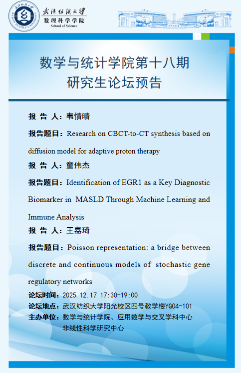 学术预告:第1059期研究生学术论坛暨数学与统计学院2025年第18期研究生学术论坛