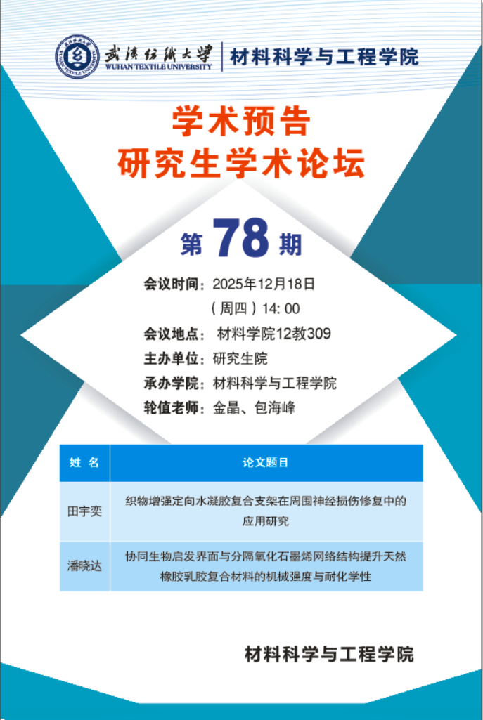 学术预告:第1061期研究生学术论坛暨材料科学与工程学院2025年第29期研究生学术论坛