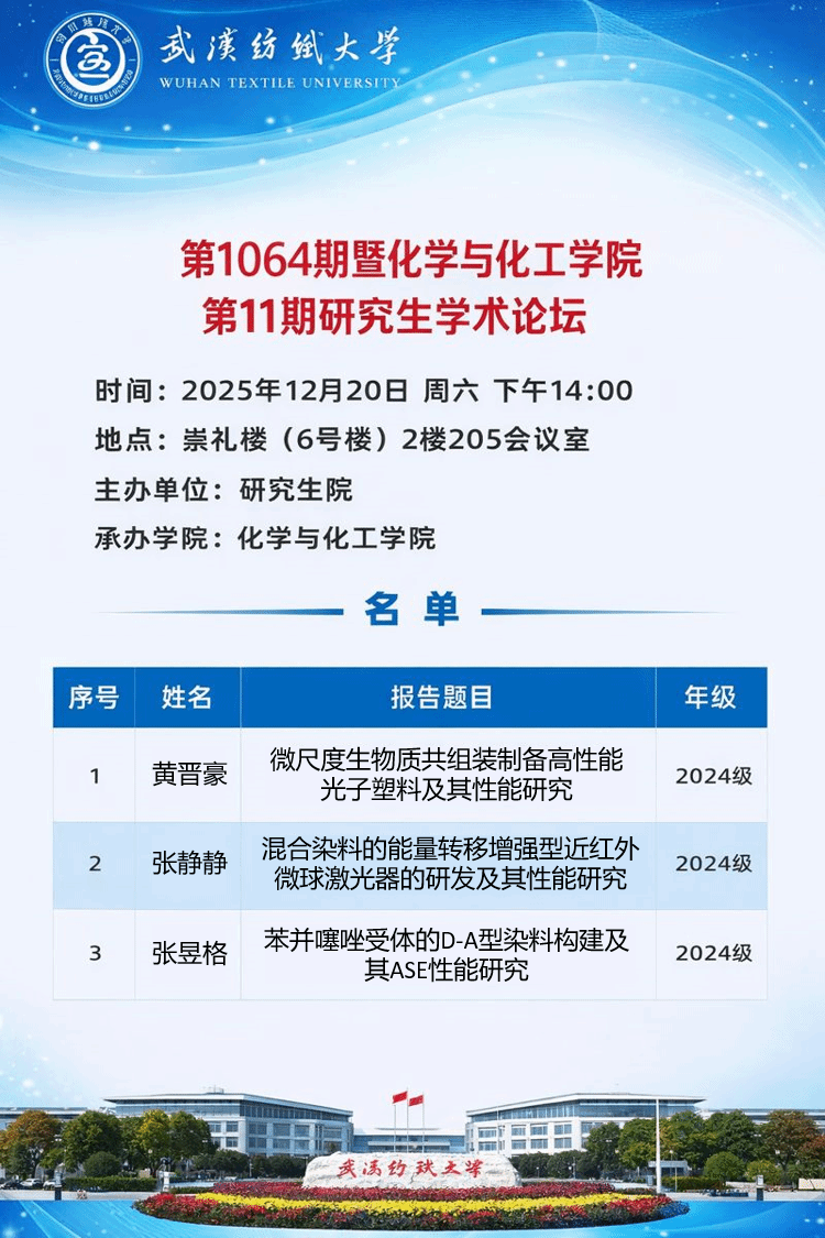 学术预告:第1064期研究生学术论坛暨化学与化工学院2025年第11期研究生学术论坛