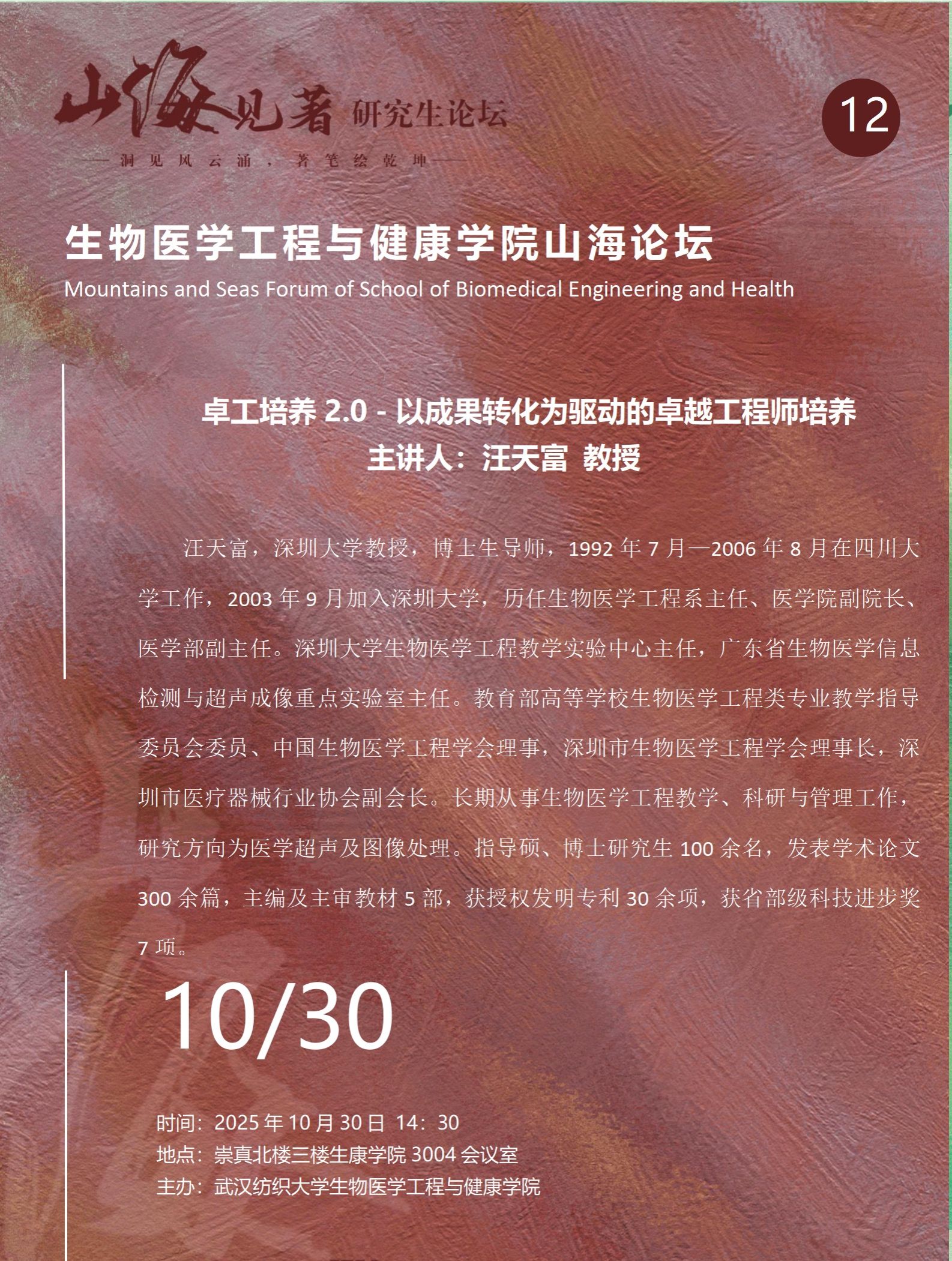 学术预告:第1067期研究生学术论坛暨生物医学工程与健康学院2025年第12期研究生学术论坛