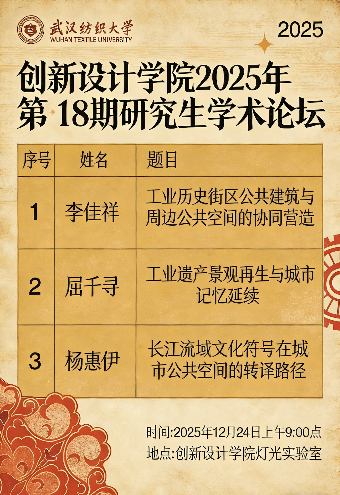 学术预告:第1070期研究生学术论坛暨创新设计学院2024年第18期研究生学术论坛