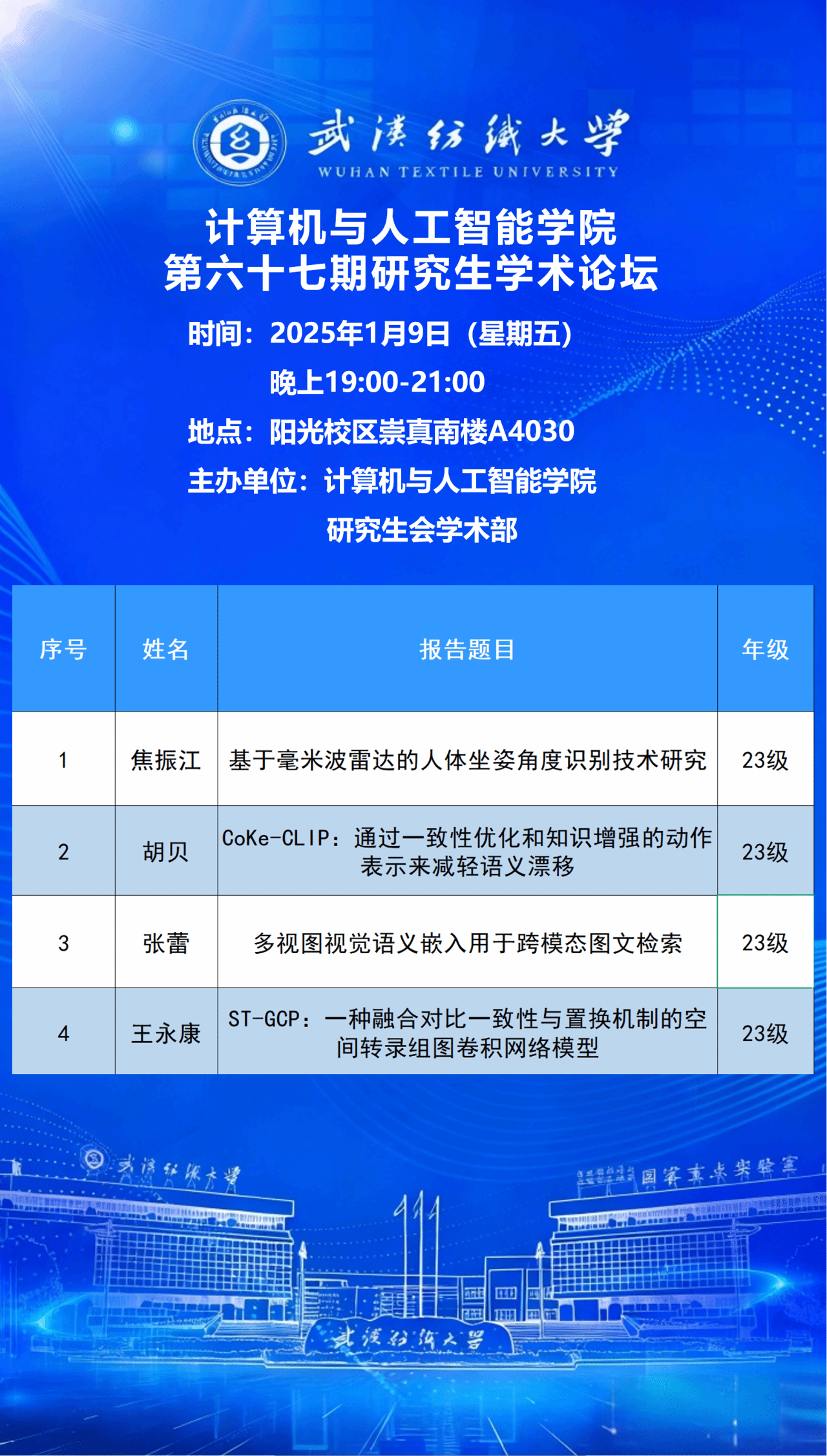 学术预告:第1074期研究生学术论坛暨计算机与人工智能学院2026年第1期研究生学术论坛