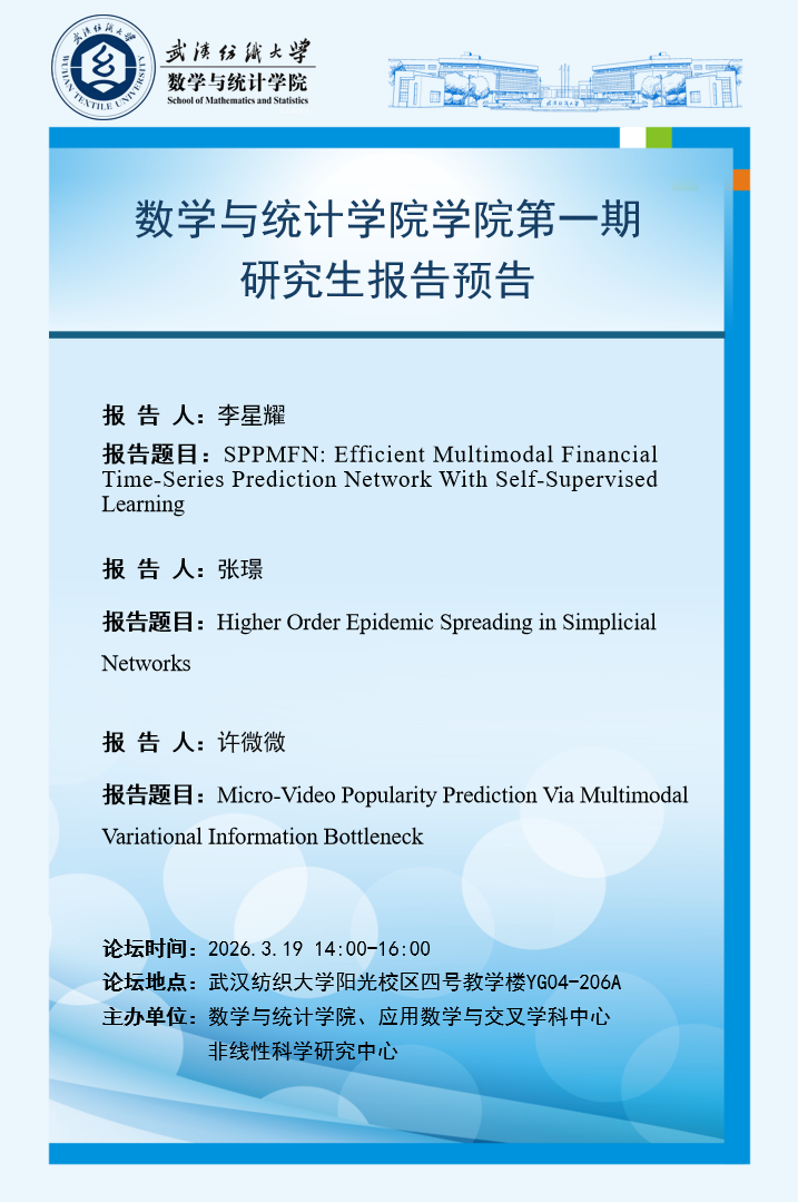 2026 03-16学术预告:第1083期研究生学术论坛暨数学与统计学院2026年第1期研究生…