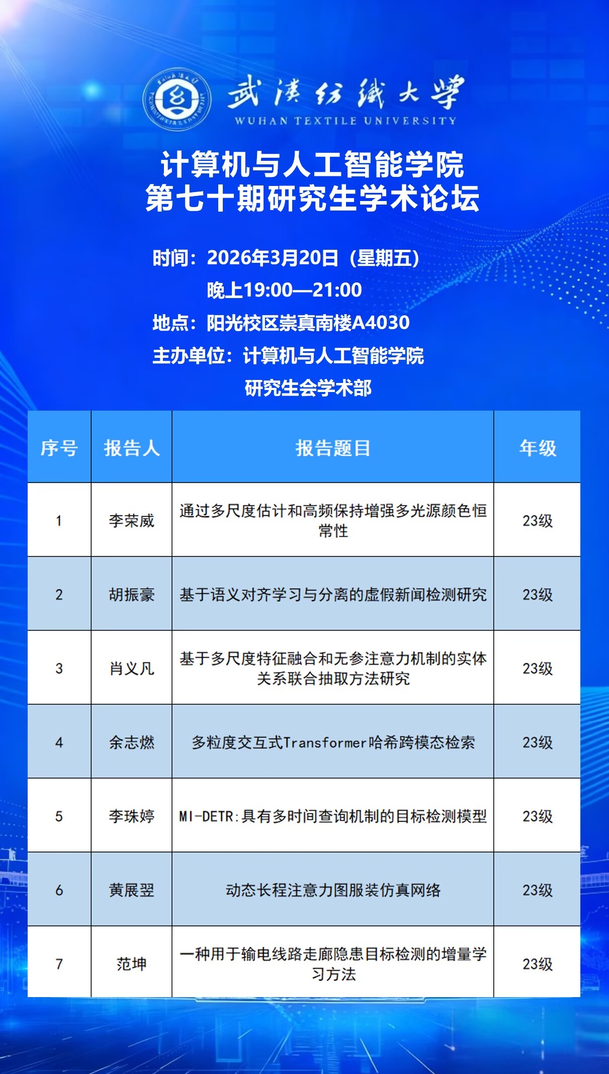 学术预告:第1086期研究生学术论坛暨计算机与人工智能学院2026年第4期研究生学术论坛