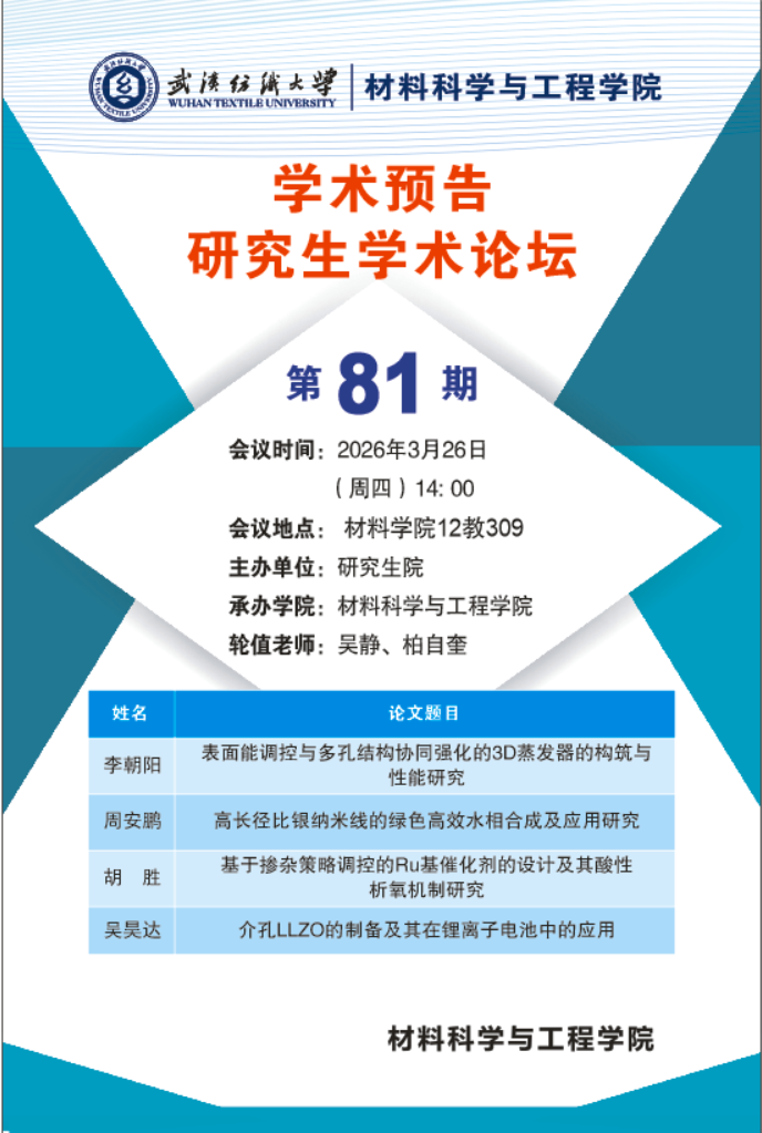 学术预告:第1092期研究生学术论坛暨材料科学与工程学院2026年第3期研究生学术论坛