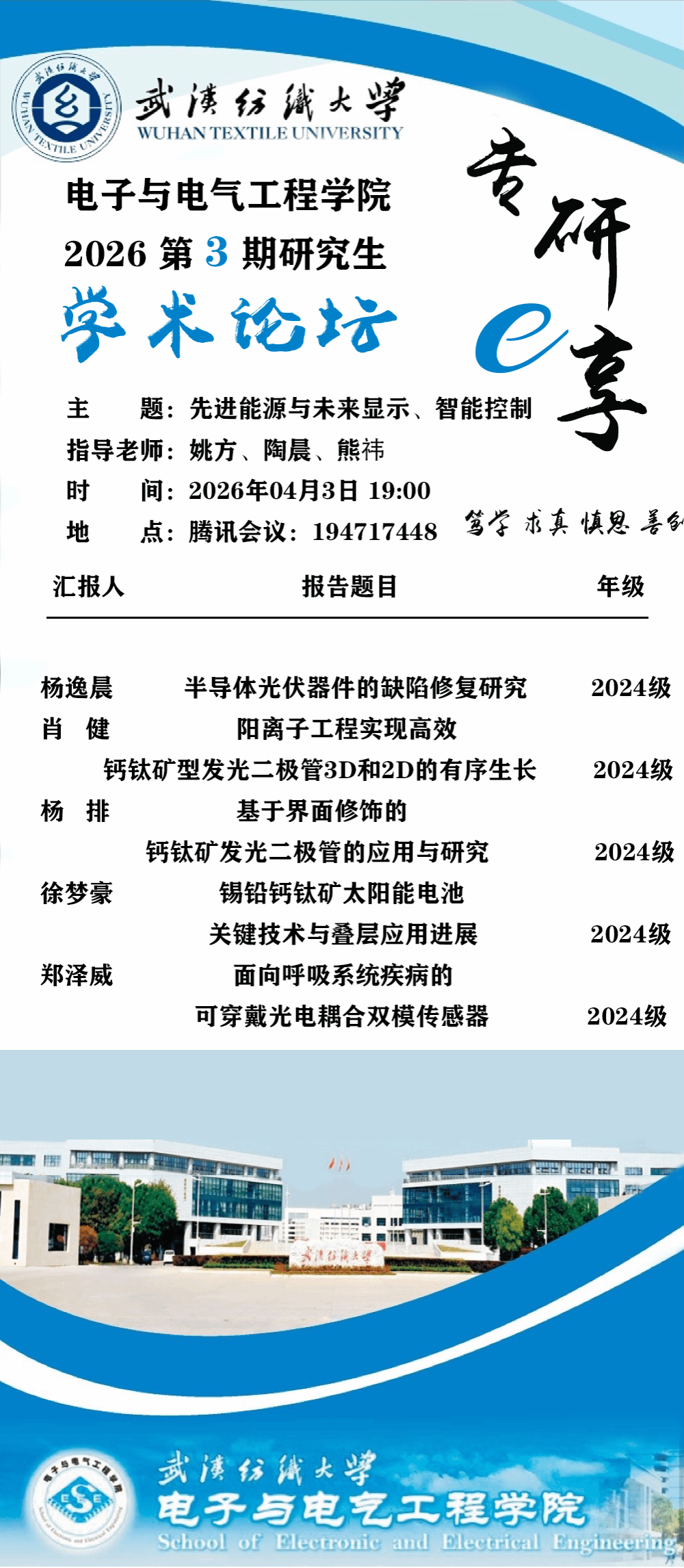 2026 04-03学术预告:第1106期研究生学术论坛暨电子与电气工程学院2026年第3期研…