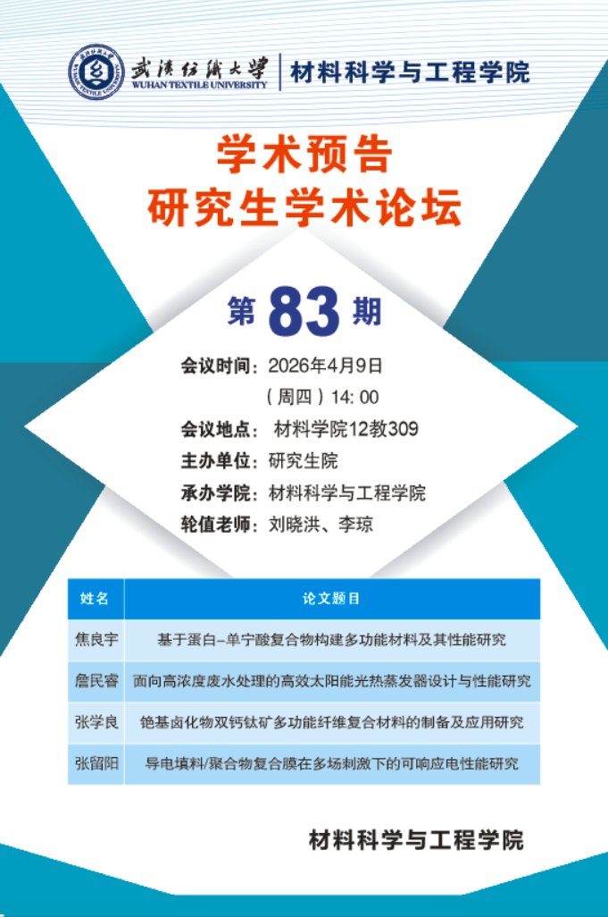 2026 04-07学术预告:第1109期研究生学术论坛暨材料科学与工程学院2026年第5期研…
