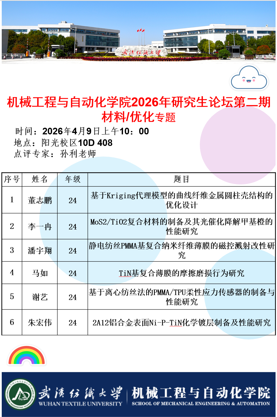 学术预告:第1110期研究生学术论坛暨机械工程与自动化学院2026年第2期研究生学术论坛