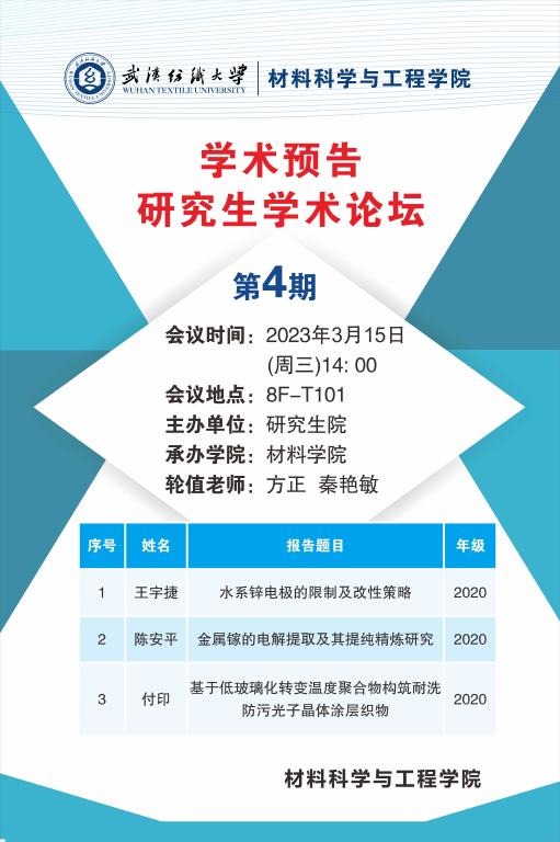 学术预告:第214期研究生学术论坛暨材料科学与工程学院2023年第4期研究生学术论坛