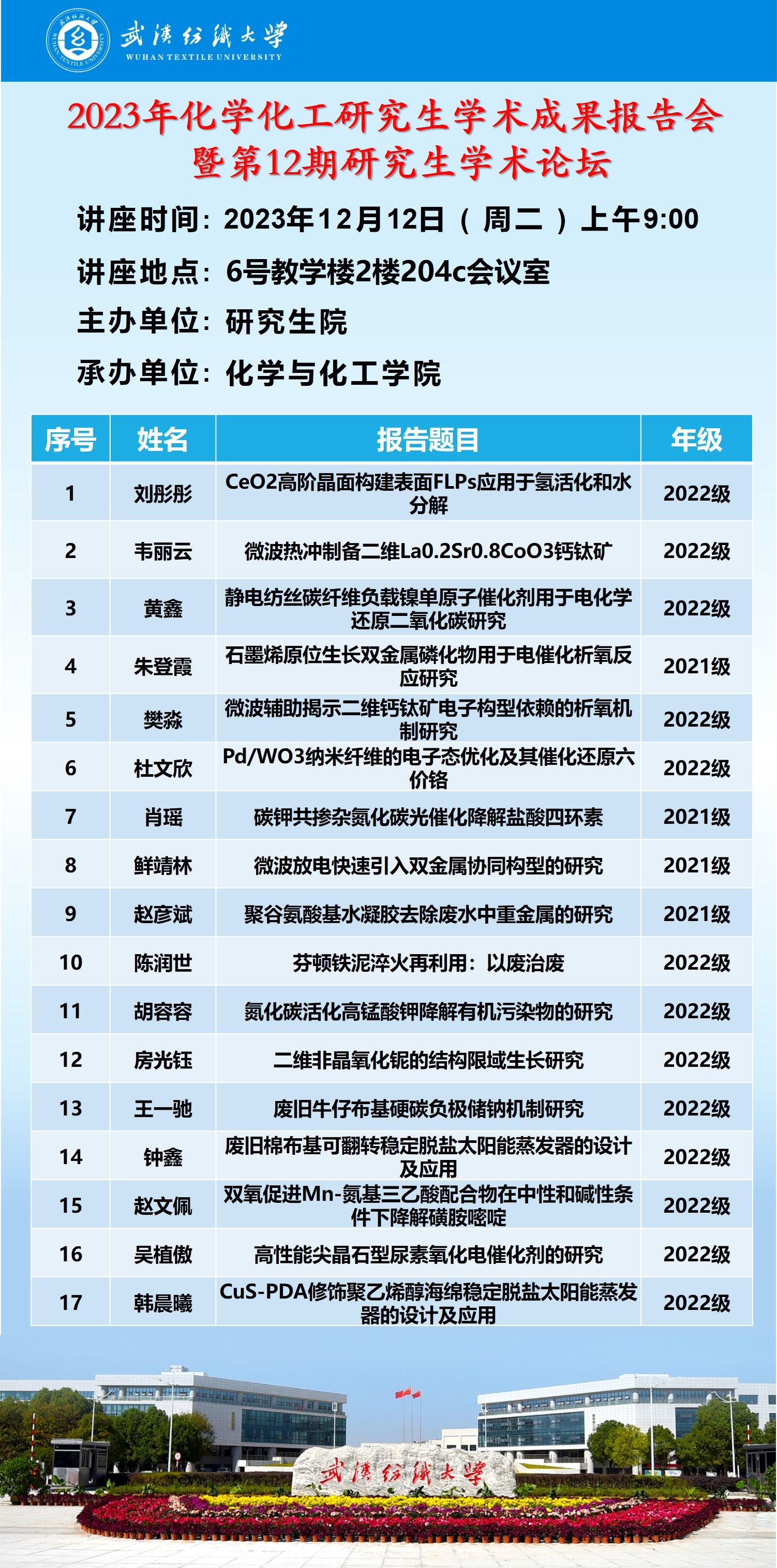 学术预告:第474期研究生学术论坛暨化学与化工学院2023年第11期研究生学术论坛