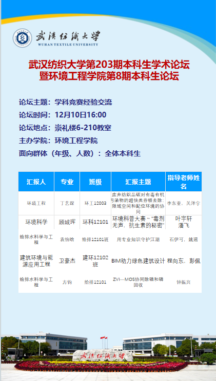 第203期本科生学术论坛暨环境工程学院第8期本科生论坛