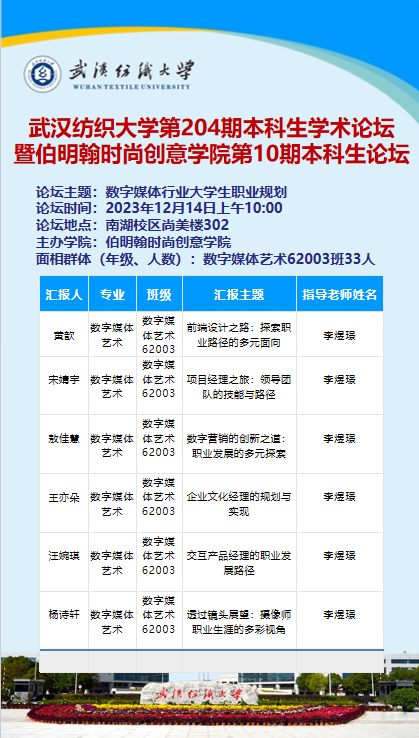 2024 06-11学术预告:第623期研究生学术论坛暨服装学院2024年第4期研究生学术论坛