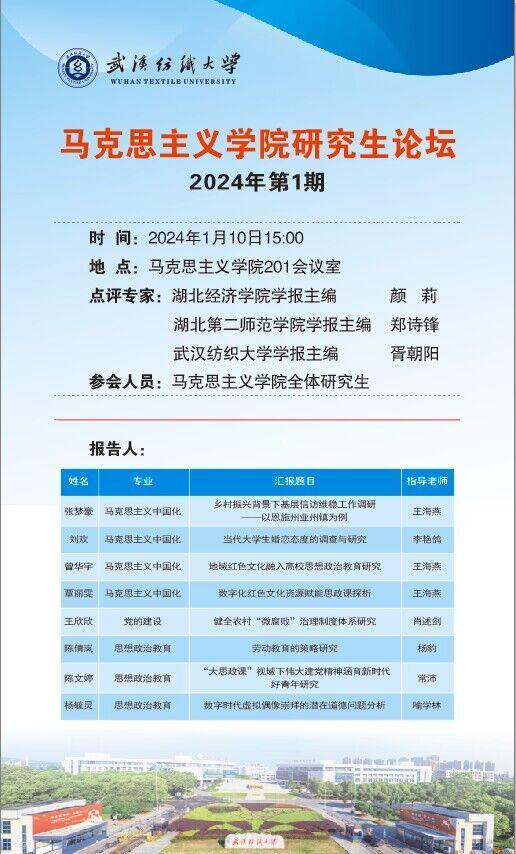 学术预告:第496期研究生学术论坛暨马克思主义学院2024年第1期研究生学术论坛