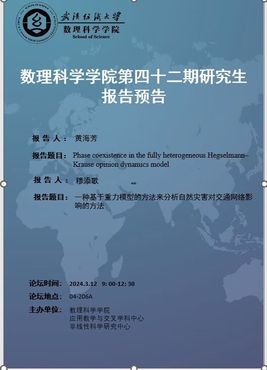 学术预告:第509期研究生学术论坛暨数理科学学院2024年第2期研究生学术论坛