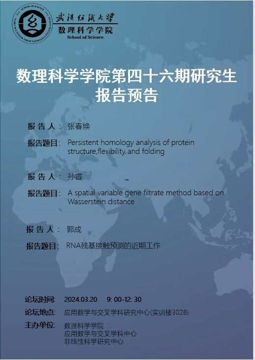 学术预告:第515期研究生学术论坛暨数理科学学院2024年第6期研究生学术论坛