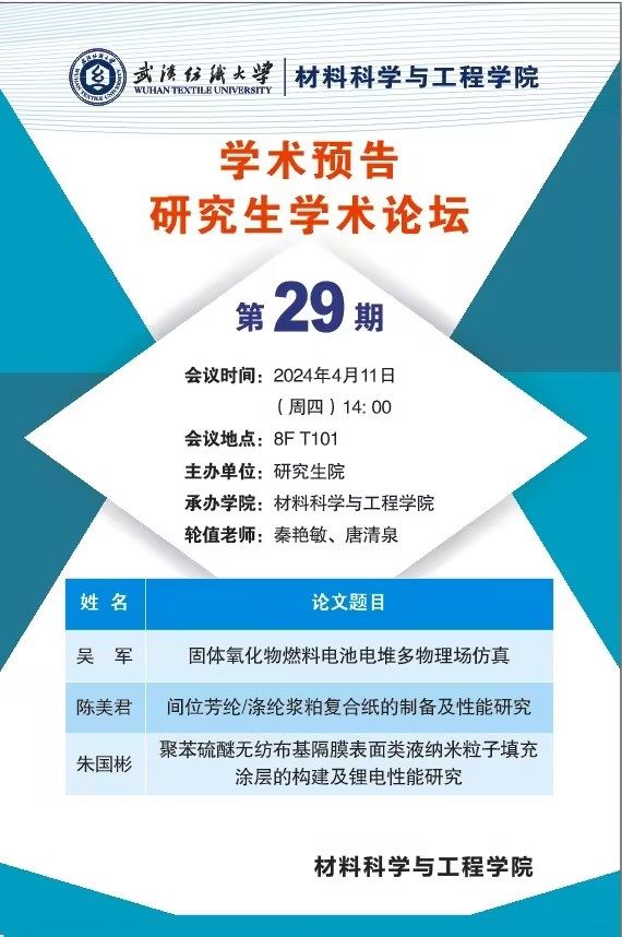 学术预告:第545期研究生学术论坛暨材料科学与工程学院2024年第5期研究生学术论坛