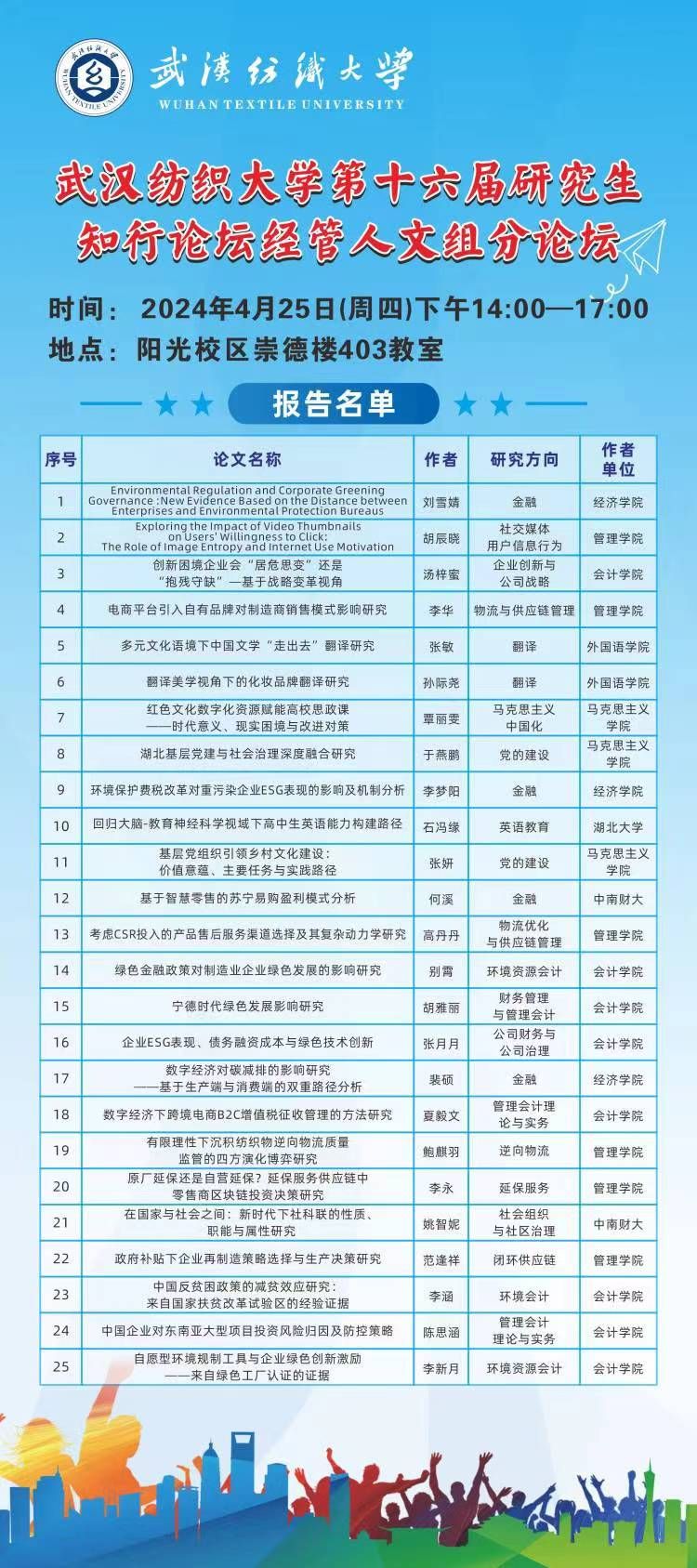 学术预告:第十六届研究生知行论坛经管人文组分论坛——第548期研究生学术论坛暨会计学院2024年第2期研究生学术论坛