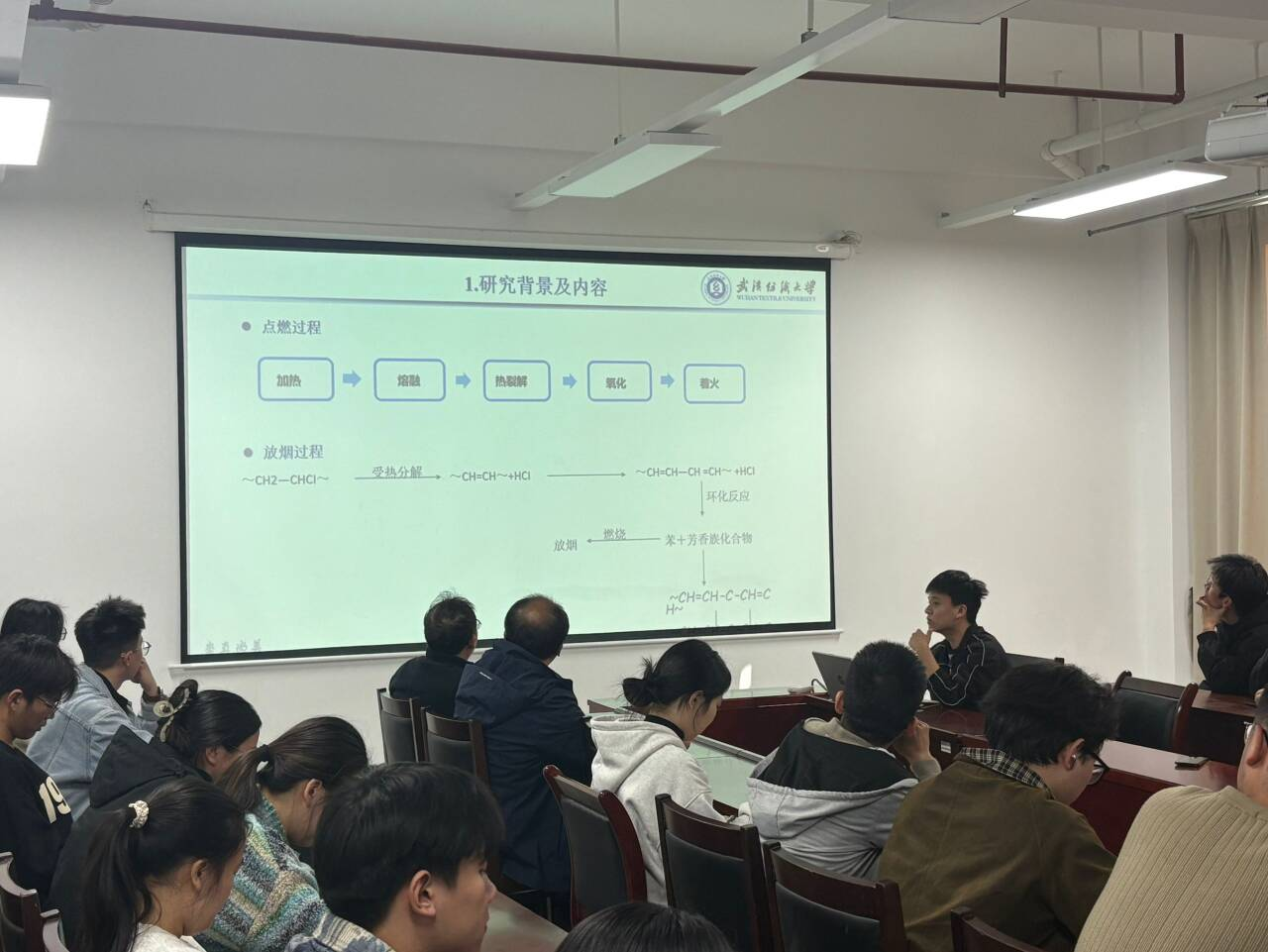 2025年11月13日,武汉纺织大学材料科学与工程学院在阳光校区成功举办了2025年第24期研究生学术论坛。本次论坛由研究生院主办、材料科学与工程学院承办,许杰、邓波两位教师担任指导评委。学院硕士研究生舍梦婷、谢威、高飞宇三位同学围绕“绿色功能材料与结构复合材料”主题,依次汇报了最新科研进展,集中展示了学院在气凝胶隔热材料、低碳混凝土阻燃抑烟材料等方向的前沿探索成果。