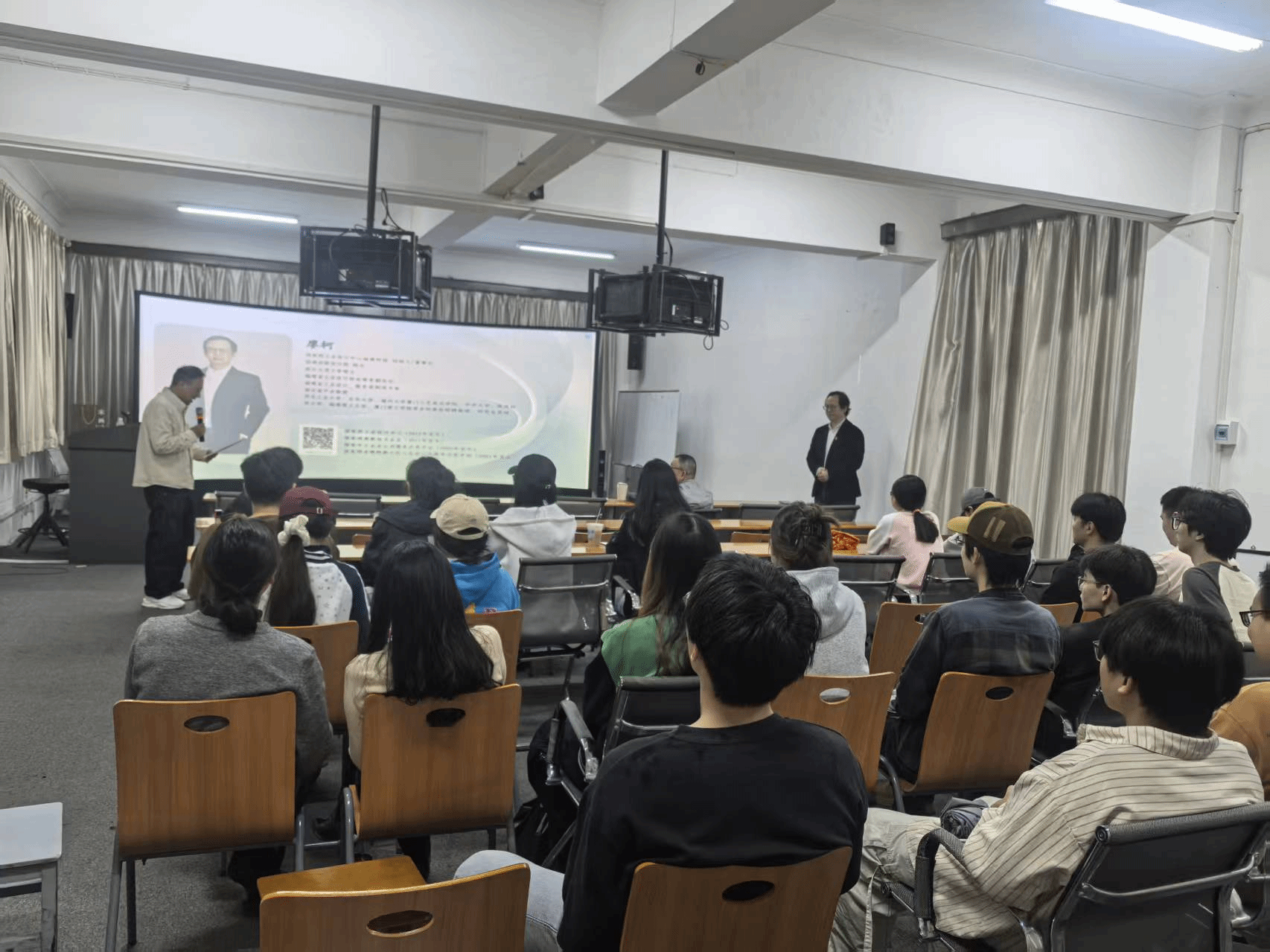 2026年4月9日下午,创新设计学院第一期研究生学术论坛博士专场在东北405室顺利举办。本次博士专场论坛由魏婷老师主持,特邀拙雅国家级工业设计中心CEO廖总担任专题分享嘉宾,学院全体博士研究生、部分硕士研究生及相关领域导师共同参与,聚焦AI时代设计领域的前沿课题与深度研究,搭建了一场高水平、深层次的学术交流与思想碰撞平台。