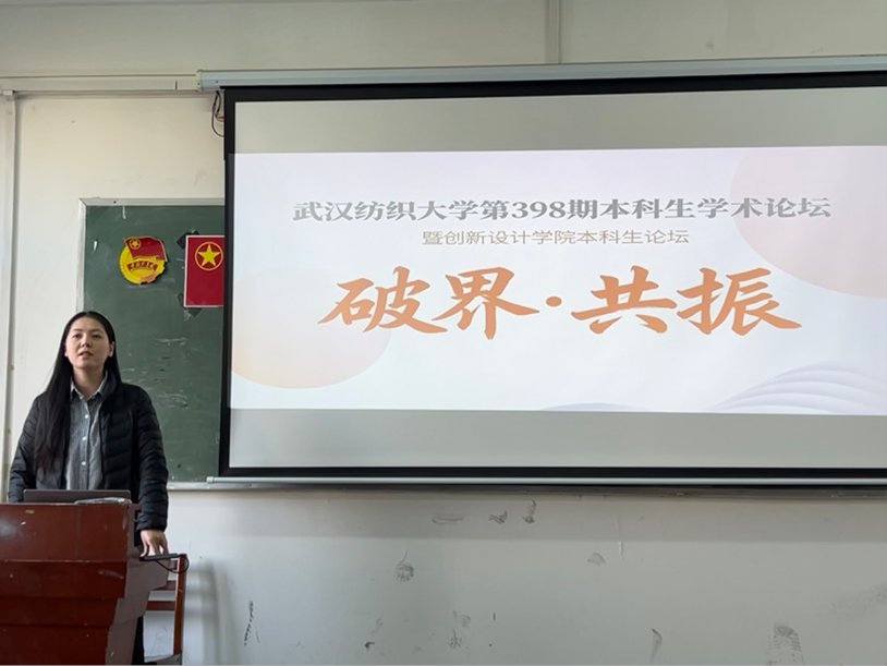 2025年11月25日上午9时,于武汉纺织大学艺术与设计学院东北402教室,成功举办了第398期武汉纺织大学本科生学术论坛(暨创新设计学院本科生论坛),此次论坛特别面向视觉传达设计专业的学生群体,以“破界·共振”为核心主题,目的在于激发学生们的创新意识与思维。该论坛由艺术与设计学院的刘浩然老师担任主持,吸引了众多师生积极参与。在论坛环节中,学生们就视觉创新设计-动态广告领域,进行了创意展示及设计作品的分享。