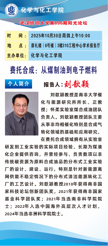 化学与化工学院举办第896期阳光论坛:费托合成 从煤炭到液体再到电子燃料生产