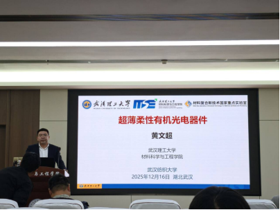 2025年12月16日下午三点至四点,武汉纺织大学阳光校区12-317教室内座无虚席,由材料科学与工程学院、湖北省纺织新材料及其应用重点实验室以及纺织新材料与先进加工全国重点实验室联合主办的第911期阳光论坛在这里隆重举行。本次论坛聚焦“超薄柔性有机光电器件”这一重要主题。