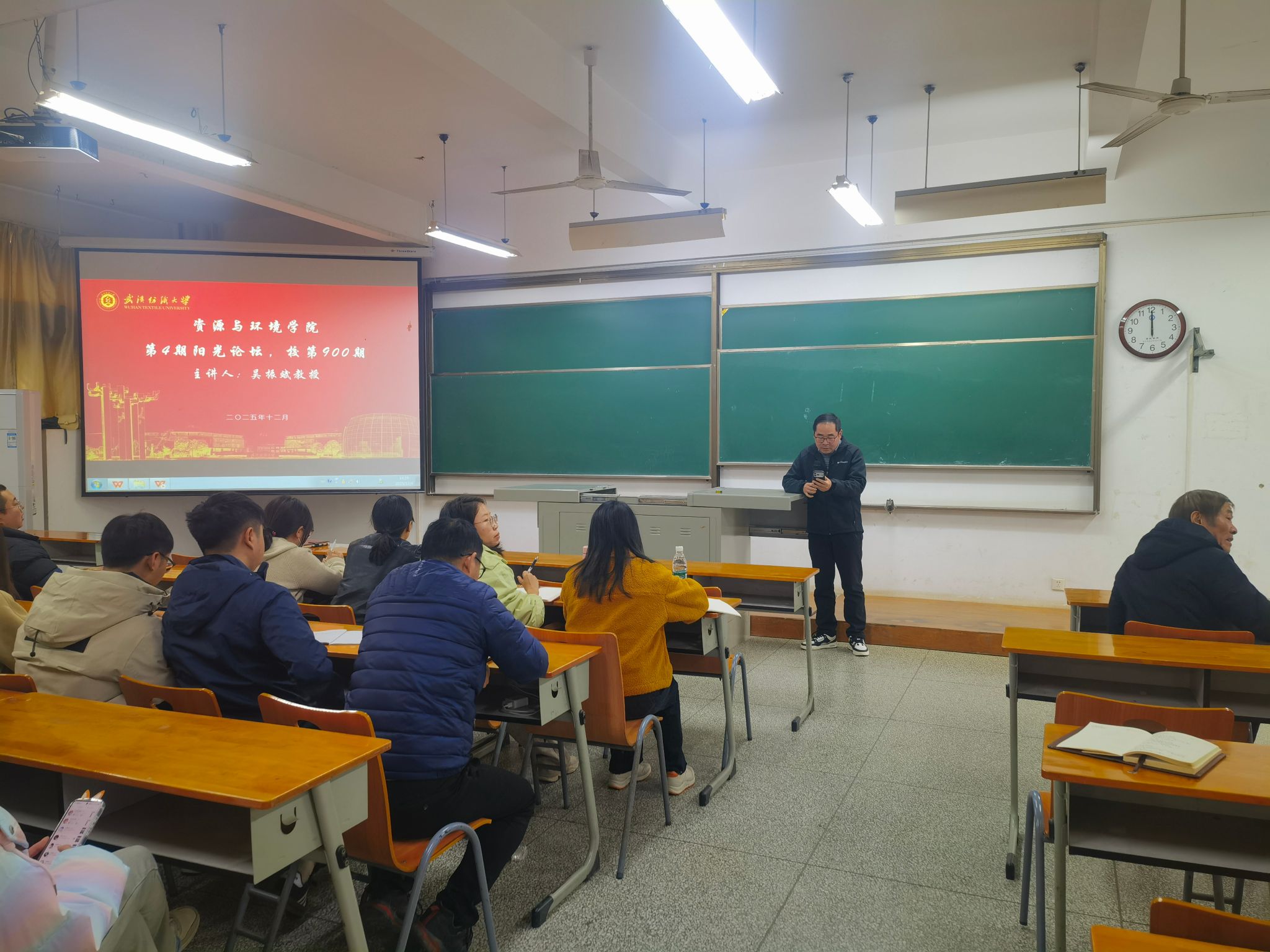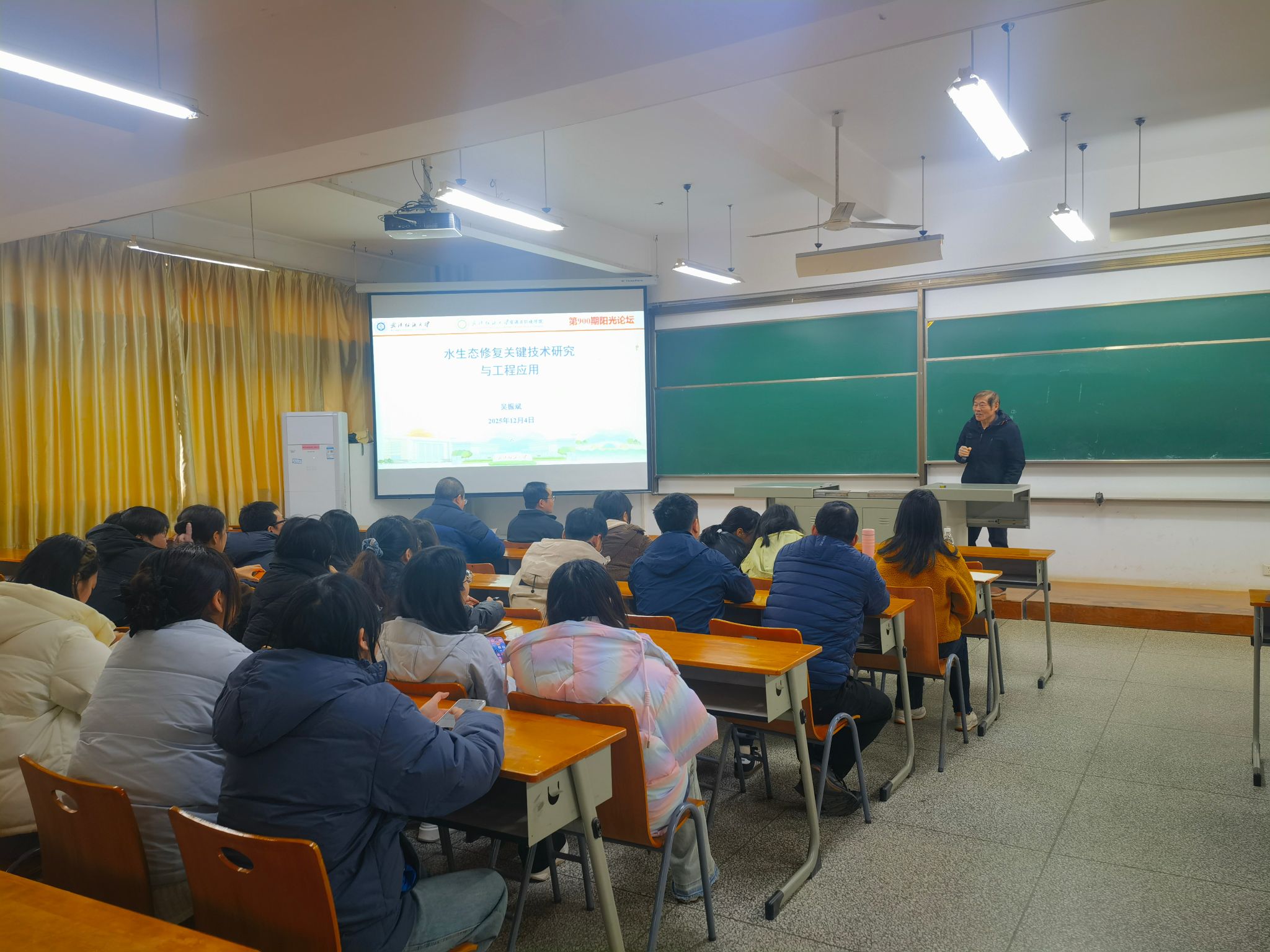 12月4日下午,资源与环境学院在6号楼221教室举办校第900期阳光论坛。本次论坛主题为“水生态修复关键技术研究与工程应用”,主讲人为武汉纺织大学、国家杰出青年基金获得者吴振斌教授。论坛由资源与环境学院潘飞教授主持,来自资源与环境学院、材料学院等学院及平台师生参与本次论坛。