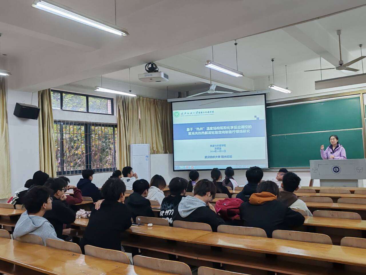 1216日下午,学院在6号楼111教室室举办校第916期阳光论坛。本次论坛主题为“基于‘热井’温度场构筑和化学反应调控的聚光光热热解废轮胎定向制备柠檬烯研究”,主讲人为武汉纺织大学池寰瀛老师。学院师生参与本次论坛。